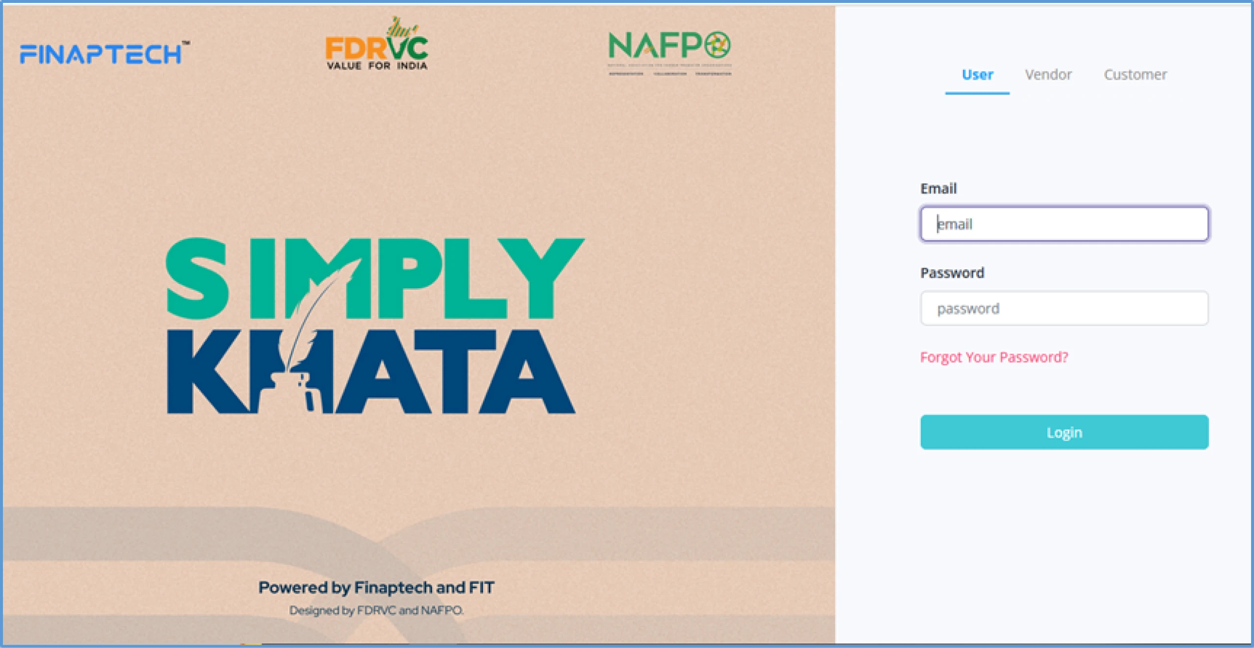 Whenever an accounting user is looking for system usage, the user with assigned credential (Received through mail) will go to the IP - https://simplykhata.com/login and provide assigned credentials (Login ID and Password) for system login and use. It is recommended that Login ID and Password should not be disclosed to outside the organisation.